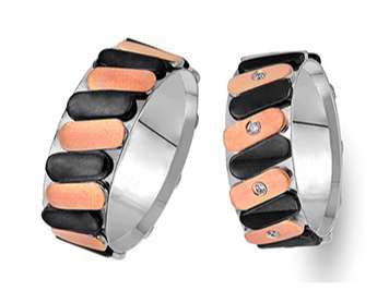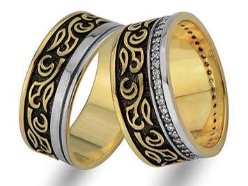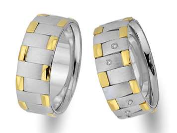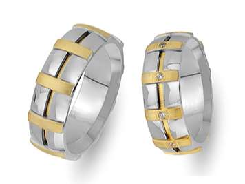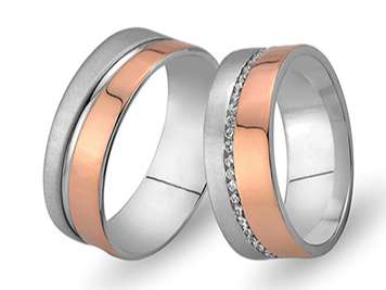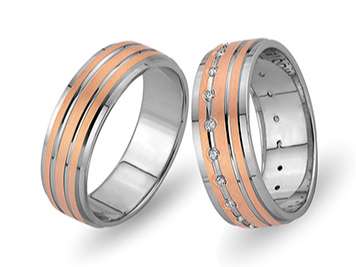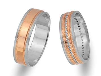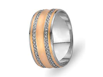 Çift Sıra Pırlanta Kırmızı ve Beyaz Altın Mesnevi Alyans