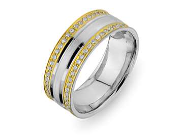 Çift Sıra Pırlanta Sarı ve Beyaz Altın Cenup Alyans