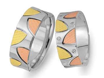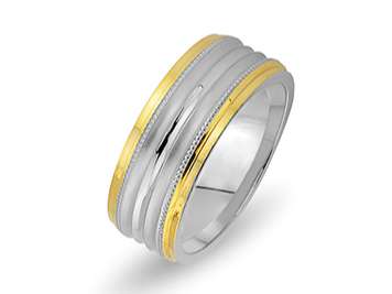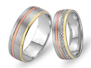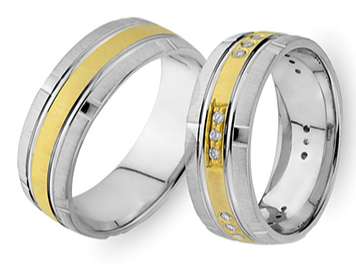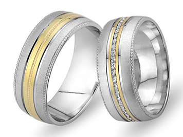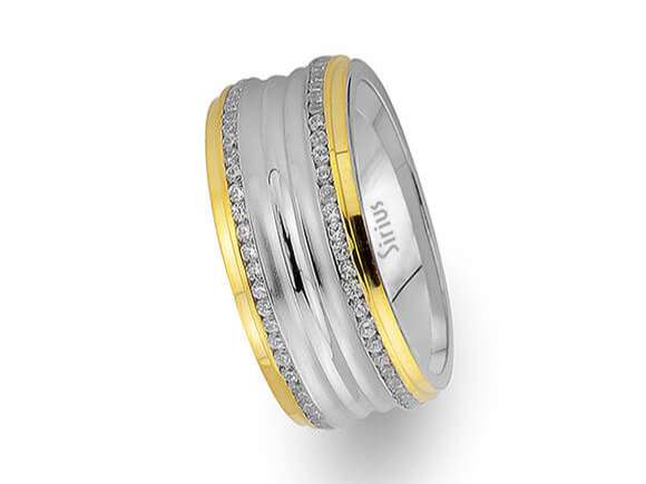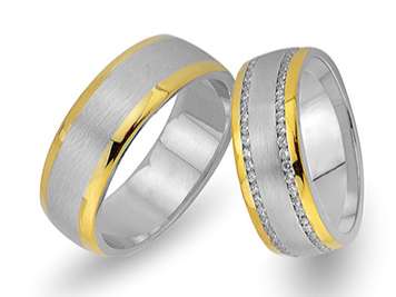 Çift Sıra Pırlanta Sarı ve Beyaz Altın Gevheri Alyans