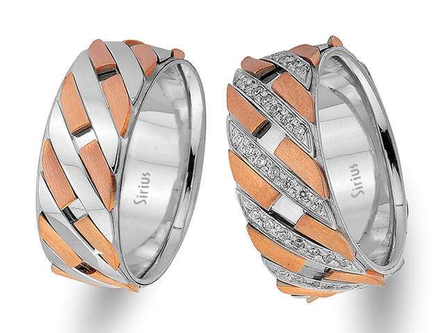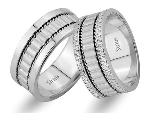 Pırlanta Sıra Taşlı Beyaz Altın Stilize Figürlü Alyans