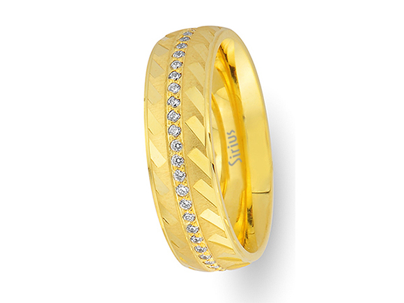 Pırlanta Sıra Taşlı Sarı Altın Ayna Efektli Alyans