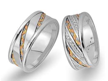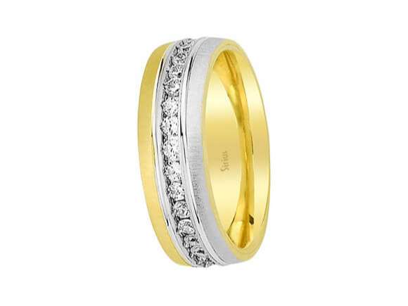Pırlanta Sıra Taşlı Sarı ve Beyaz Altın Atlas Alyans