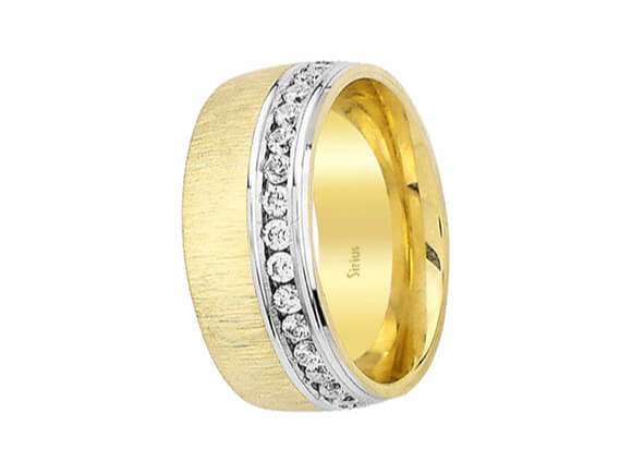 Pırlanta Sıra Taşlı Sarı ve Beyaz Altın Bastet Alyans