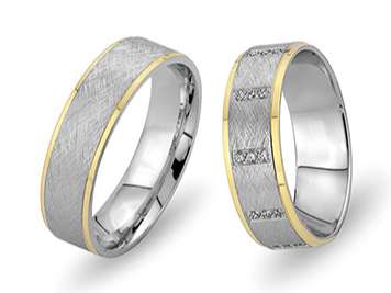 Pırlanta Sıra Taşlı Sarı ve Beyaz Altın Havana Alyans