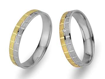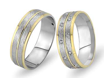 Pırlanta Sıra Taşlı Sarı ve Beyaz Altın Ren Alyans