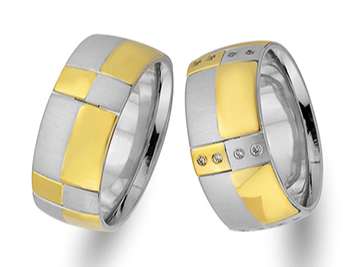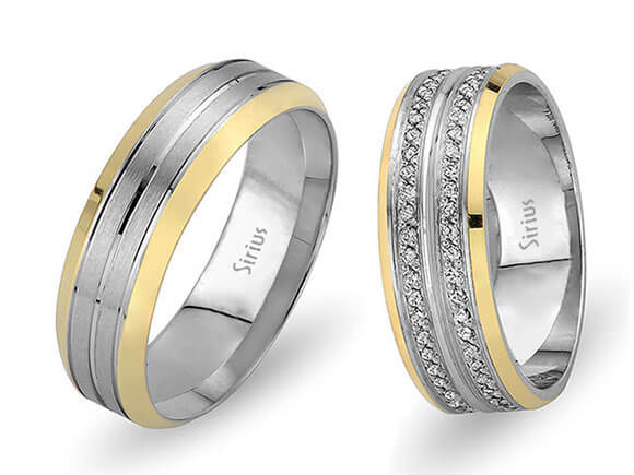 Pırlanta Taşlı Beyaz Altın Çift Renk Dolmabahçe Alyans