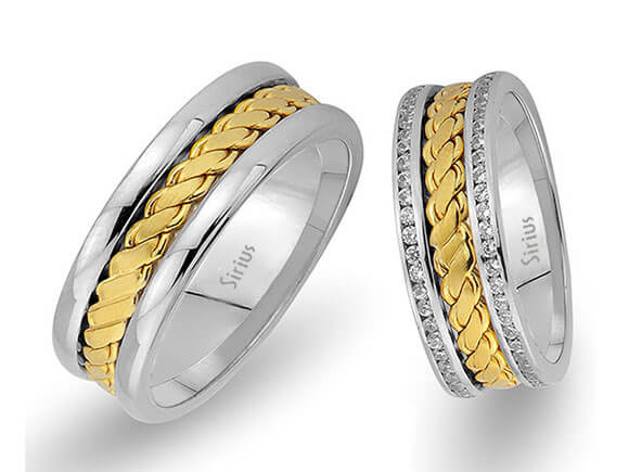 Pırlanta Taşlı Kırmızı, Sarı ve Beyaz Altın Broadway Alyans