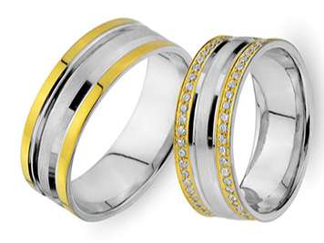 Pırlanta Taşlı Kırmızı ve Beyaz Altın Hüma Alyans