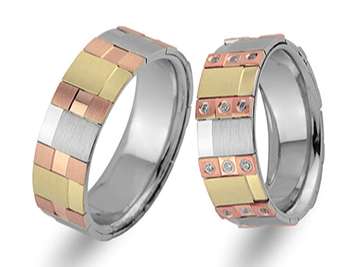 Pırlanta Taşlı Kırmızı ve Beyaz Altın Mercan Alyans
