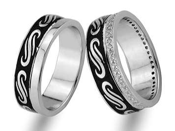 Pırlanta Taşlı Kumlanmış Kırmızı ve Beyaz Altın Ekose Alyans