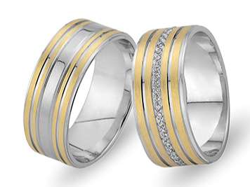 Pırlanta Taşlı Kumlanmış Sarı ve Beyaz Altın Harran Alyans
