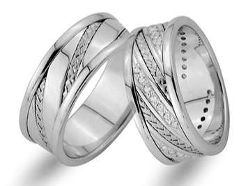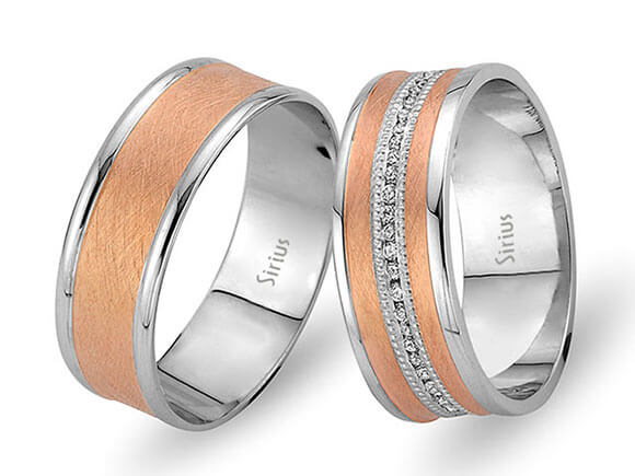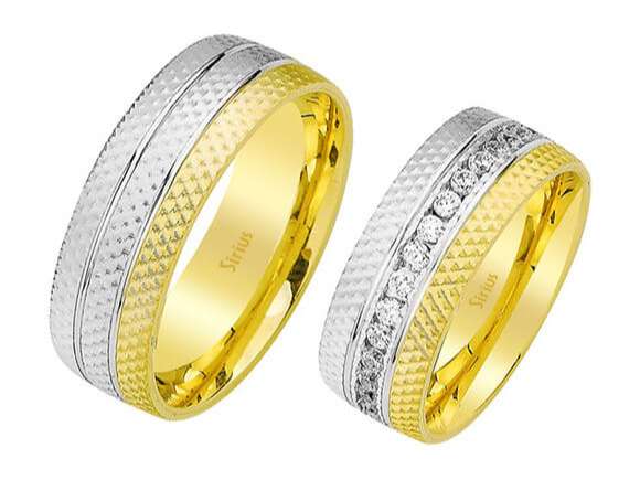 Pırlanta Taşlı Kumlanmış Sarı ve Beyaz Altın Kahire Alyans