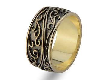 Pırlanta Taşlı Sarı Altın Floral Desenli Alyans