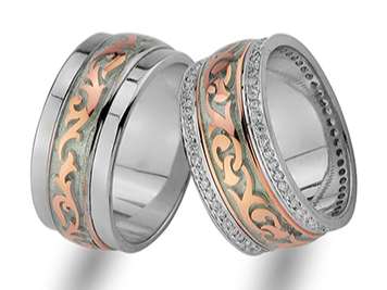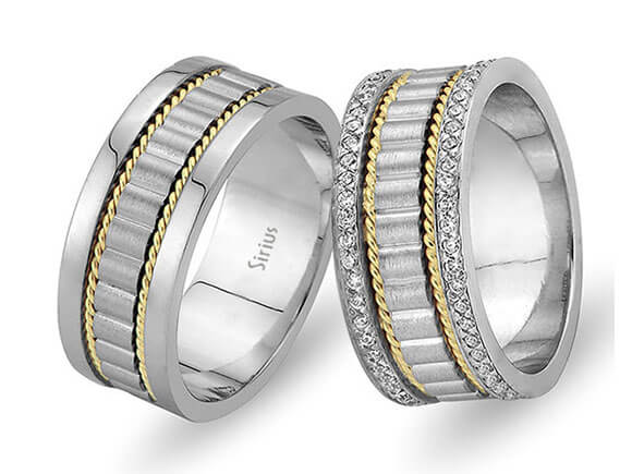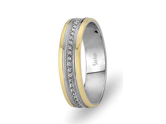 Pırlanta Taşlı Sarı ve Beyaz Altın Delos Alyans