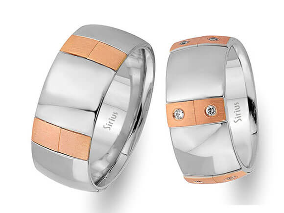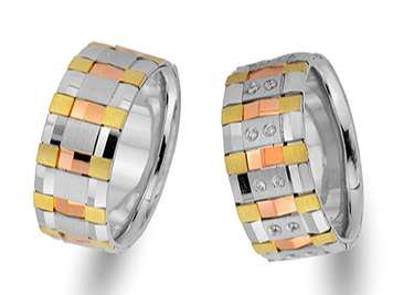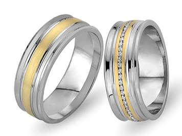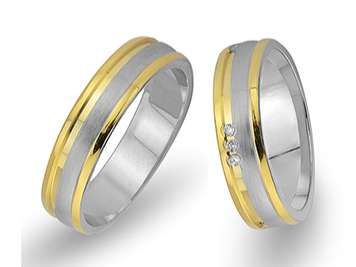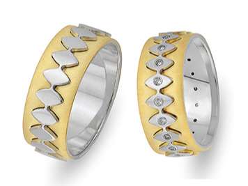 Pırlanta Taşlı Sarı ve Beyaz Altın Fiyonk Alyans