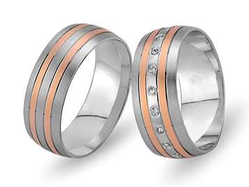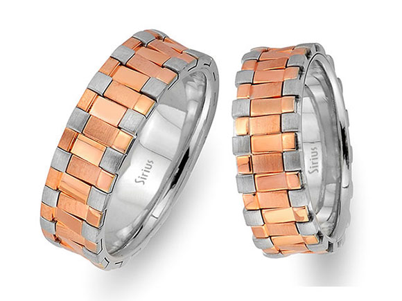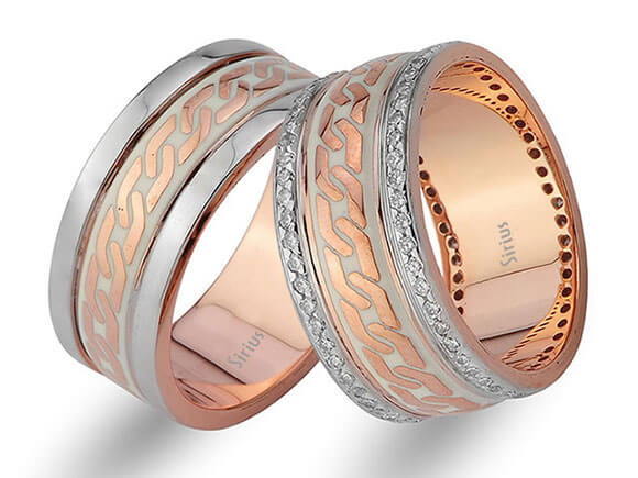 Pırlanta Taşlı Sarı ve Beyaz Altın Santorini Alyans
