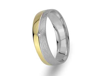 Pırlanta Tek Taşlı Sarı ve Beyaz Altın Klasik Alyans