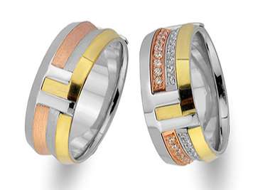 Prenses Kesim Pırlanta Taşlı Sarı ve Beyaz Altın Alyans