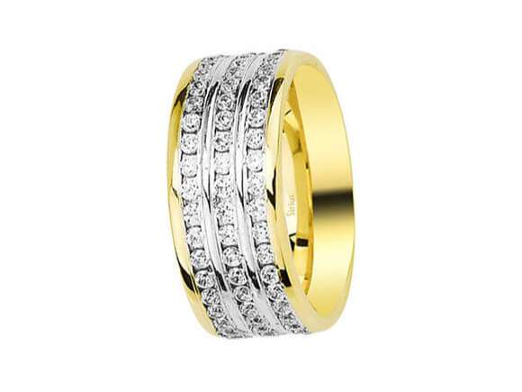 Üç Sıra Pırlanta Sarı ve Beyaz Altın Tarik Alyans