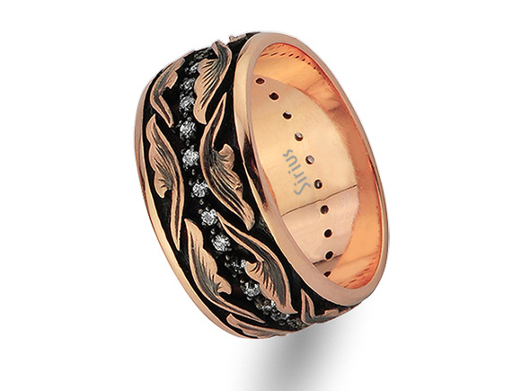 Kırmızı Altın Stilize Yaprak Motifli Alyans