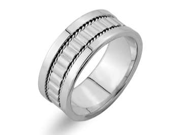 Üç Renkli Beyaz Altın Örgü Desenli Alyans