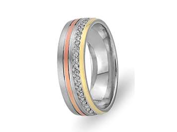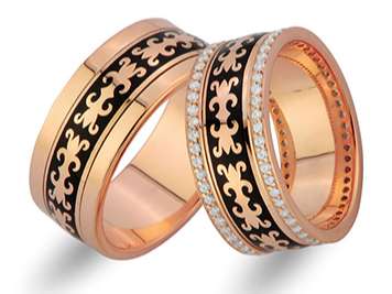 Çift Sıra Pırlanta Kırmızı Altın Bizantik Alyans