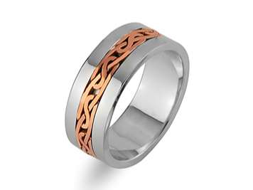 Çift Sıra Pırlanta Kırmızı ve Beyaz Altın Girift Alyans