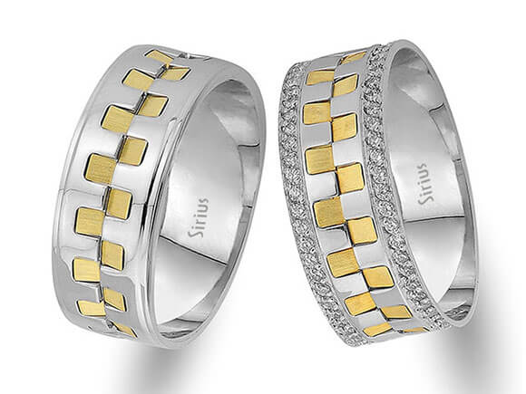 Çift Sıra Pırlanta Sarı ve Beyaz Altın Şelale Alyans