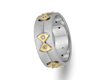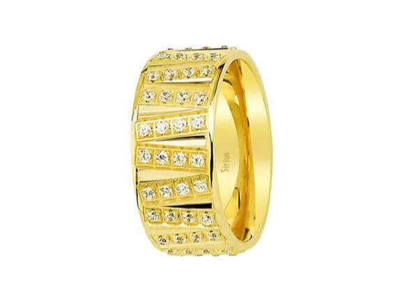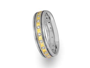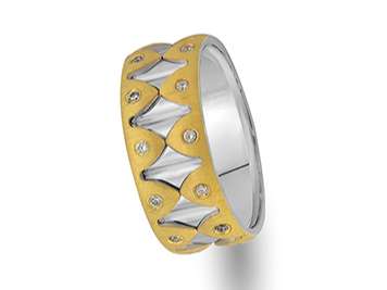 Çift Sıra Pırlanta Sarı ve Beyaz Altın Tigris Alyans
