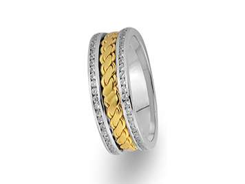 Pırlanta Sıra Taşlı Beyaz Altın Akad Alyans