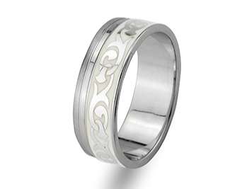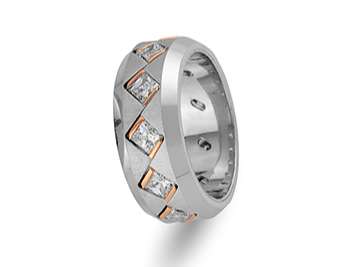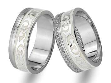 Pırlanta Sıra Taşlı Beyaz Altın Satir Motifli Alyans