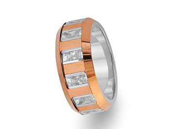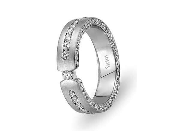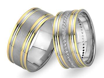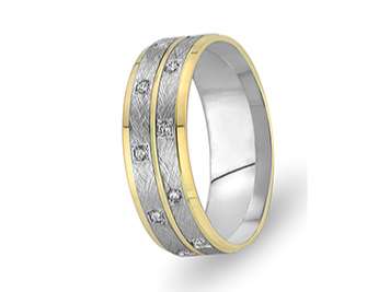 Pırlanta Sıra Taşlı Sarı ve Beyaz Altın Erendiz Alyans