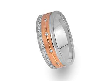 Pırlanta Sıra Taşlı Sarı ve Beyaz Altın Mat Aruba Alyans