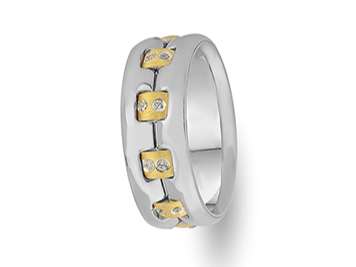 Pırlanta Sıra Taşlı Sarı ve Beyaz Altın Pervin Alyans