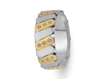 Pırlanta Sıra Taşlı Sarı ve Beyaz Altın Rustik Alyans