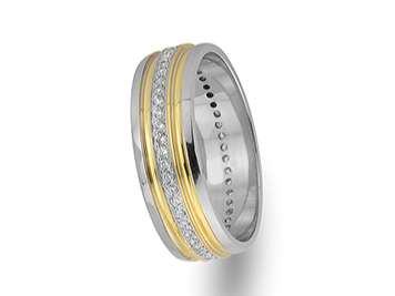 Pırlanta Sıra Taşlı Sarı ve Beyaz Altın Tebriz Alyans
