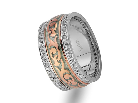 Pırlanta Taşlı Beyaz Altın Dehhani Alyans