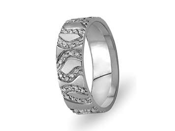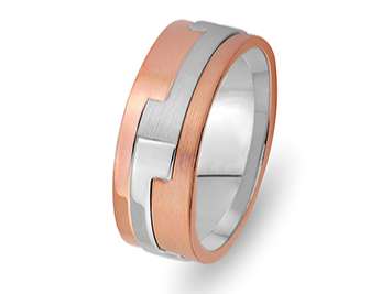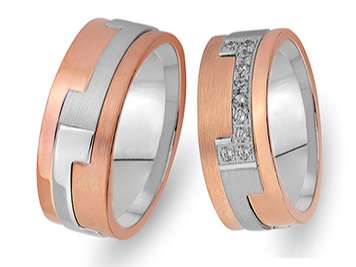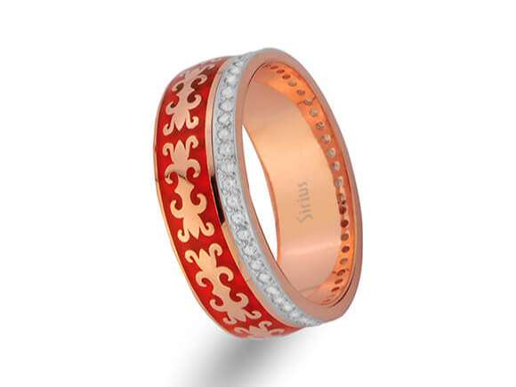 Pırlanta Taşlı Beyaz ve Kumlanmış Kırmızı Altın Piet Alyans