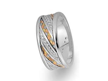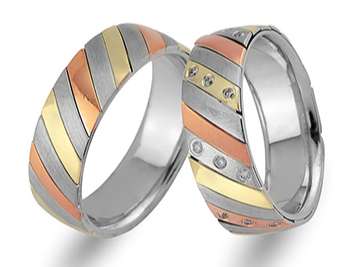 Pırlanta Taşlı Kırmızı Sarı ve Beyaz Altın Marilyn Alyans