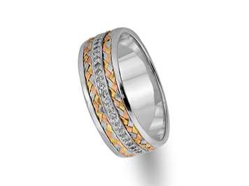 Pırlanta Taşlı Kırmızı, Sarı ve Beyaz Altın Molloy Alyans