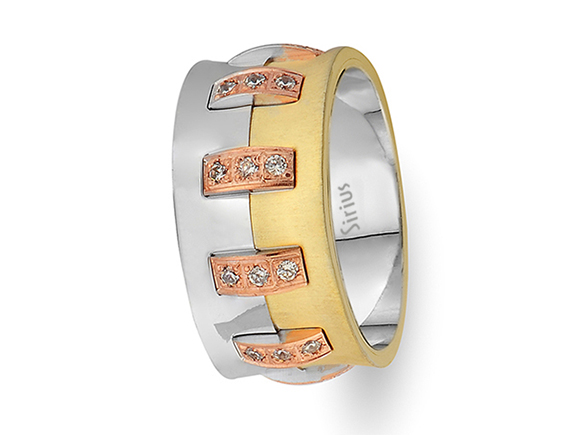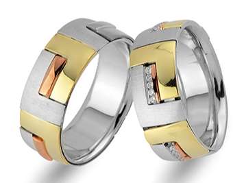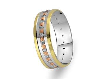 Pırlanta Taşlı Kırmızı, Sarı ve Beyaz Altın Trend Alyans