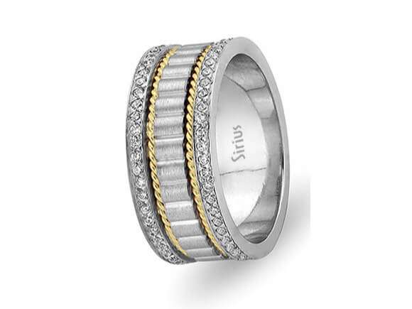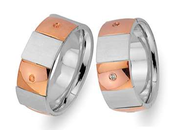 Pırlanta Taşlı Kumlanmış Kırmızı ve Beyaz Altın Ekose Alyans