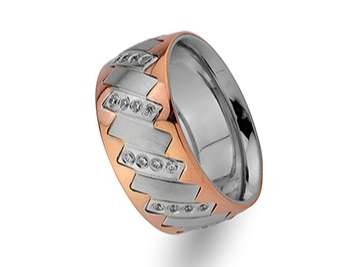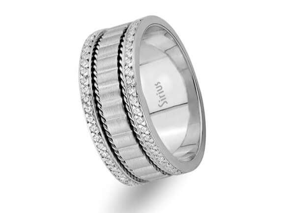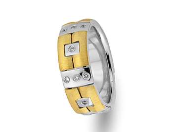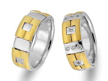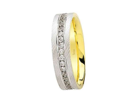 Pırlanta Taşlı Kumlanmış Sarı ve Beyaz Altın Köşk Alyans