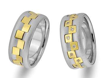 Pırlanta Taşlı Sarı ve Beyaz Altın Cumba Alyans