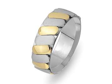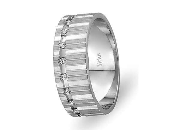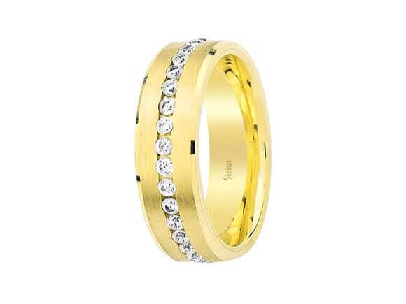 Pırlanta Taşlı Sarı ve Beyaz Altın Diagonal Alyans