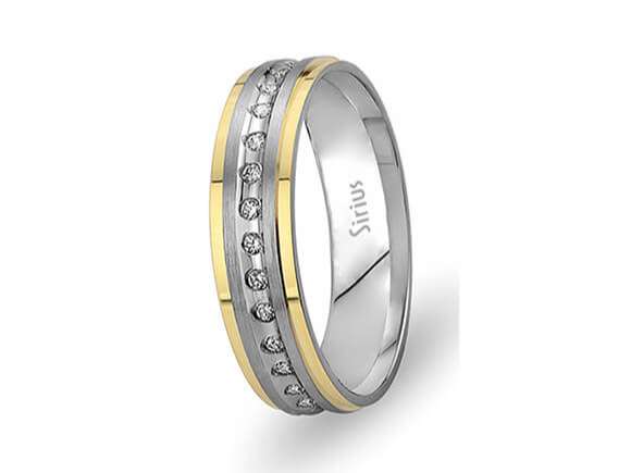 Pırlanta Taşlı Sarı ve Beyaz Altın Fısıldayan Duvar Alyans