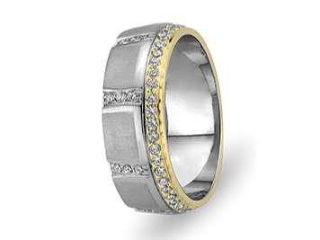 Pırlanta Taşlı Sarı ve Beyaz Altın Klasik Alyans