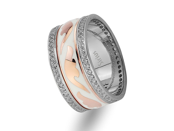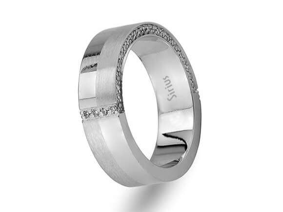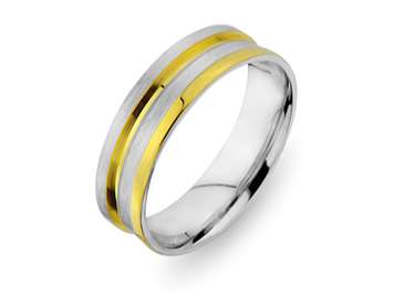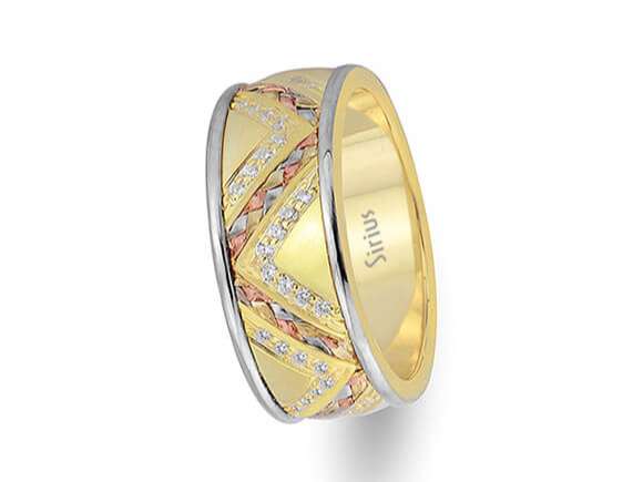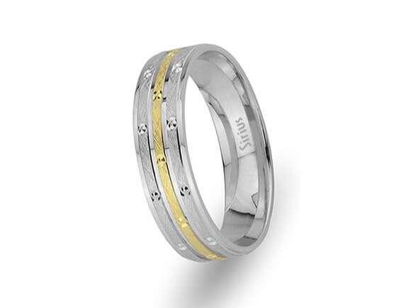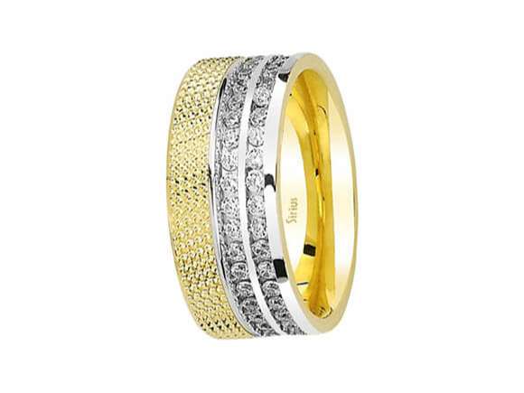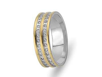 Pırlanta Taşlı Sarı ve Beyaz Altın Riva Alyans