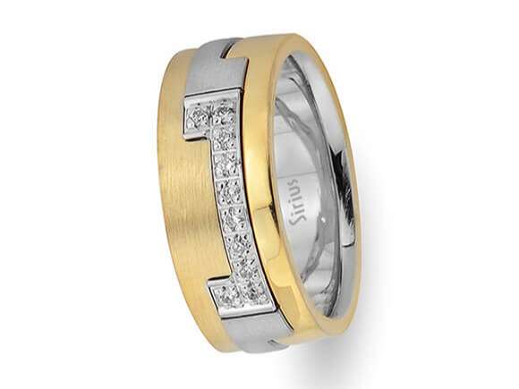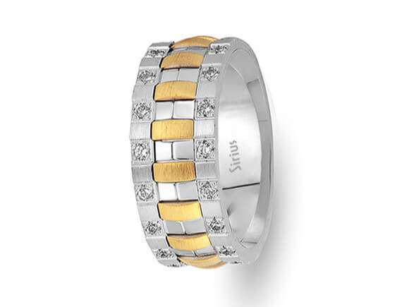Pırlanta Taşlı Sarı ve Beyaz Altın Sazkar Alyans