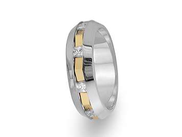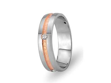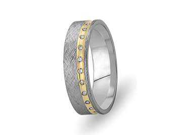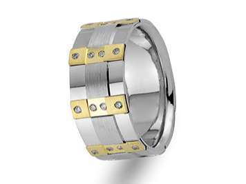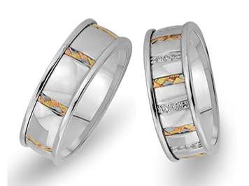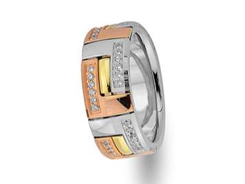 Pırlanta Taşlı Üç Renkli Beyaz Altın Örgü Desenli Alyans
